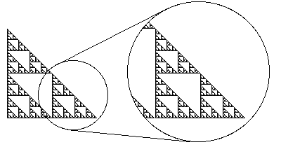 | The Sierpinski Gasket with one of the three large copies of itself magnified to show detail |