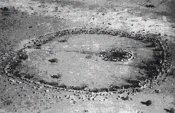 | Each extended family's home is a ring-shaped livestock pen, with a gate on one end (call this