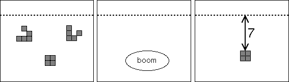 | Conway found that two properly timed gliders can collide with a block, destroy the gliders and block, and rebuild the block closer to the computer. |