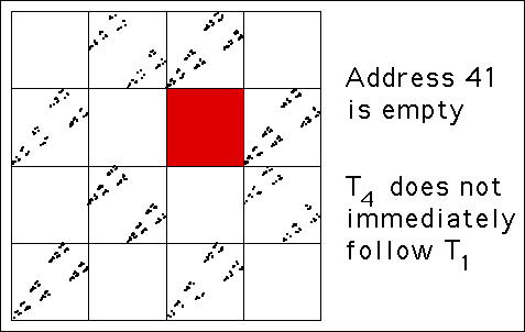 First, we note some address length 2 subsquares appear empty. What are these addresses, and what are the bin-to-bin combinations that cannot occur?