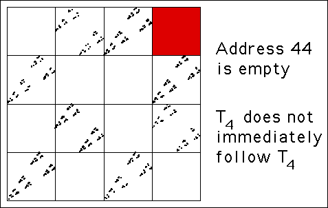 First, we note some address length 2 subsquares appear empty. What are these addresses, and what are the bin-to-bin combinations that cannot occur?