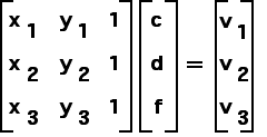 | Here is a proof that the matrix is invertible if and only if the points p1, p2, and p3 are non-collinear. | |||||||||